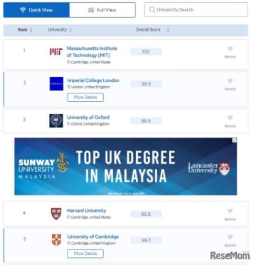 世界大学評価機関の英国クアクアレリ・シモンズ(Quacquarelli Symonds:QS)は20...