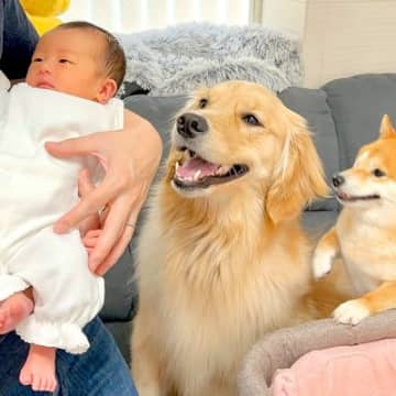 犬たちが『生後0ヶ月の赤ちゃん』と初対面した結果…『笑顔で迎える光景』が尊すぎると101万再生「優しさに満ちてる」「素敵すぎて涙が…」