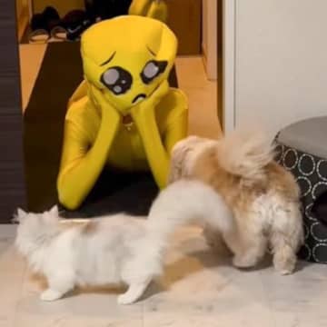 猫と犬に『変装して帰宅ドッキリ』しかけた結果…まさかの展開が面白すぎると255万再生「想定外すぎて笑った」「怖いww」爆笑の嵐