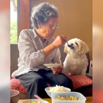 犬とおばあちゃんが『朝ごはん』を一緒に食べた結果…まるで孫のような『幸せ溢れる光景』が163万再生「素敵な関係すぎる」海外からも大絶賛