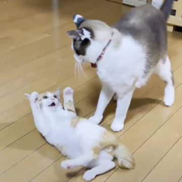 保護子猫が深夜に『運動会』を開催した結果…先住猫に"叱られる"様子が可愛すぎると1万2000再生「癒やされた」「お母さんみたい」