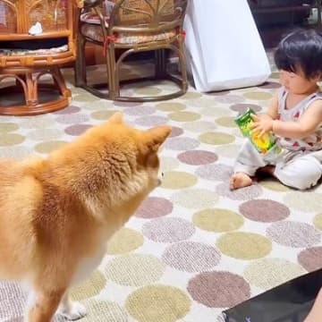犬が『赤ちゃんに構ってもらえなくなった』結果…不器用で健気な『まさかの行動』に感動「なんか涙が出てきた」「なんて優しい世界」と19万再生