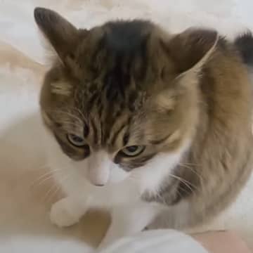 YouTubeに投稿されたのは、保護猫のななこちゃんと飼い主さんのある日の様子。飼い主さんはお友達と...