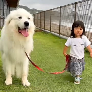 2歳の女の子が『動かない超大型犬のリードを持った』結果…想定外の展開が凄すぎると36万再生「ペース合わせてあげてて感動…」「優しすぎ」
