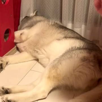 『爆睡するハスキー犬』を覗いてみた結果…想像の上をいく『寝言』が半端じゃないと126万再生「ぶーぶー言ってるw」「子供みたい」と絶賛