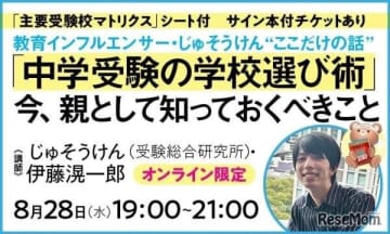 教育インフルエンサー・じゅそうけん“ここだけの話”「中学受験の学校選び術」8/28