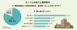 アンケートには314人から回答があった。 戦争経験者から直接体験談を聞いた人が81.5%とかなりの割...