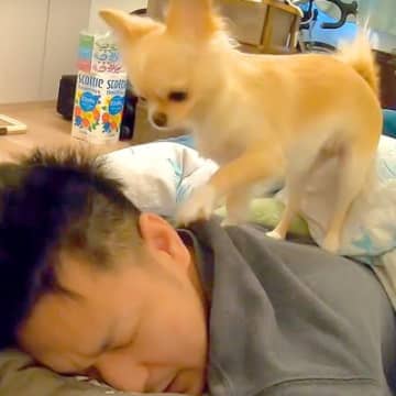 犬が『4度寝したパパ』に激怒した結果…『想像を絶する行動』が面白すぎると43万再生「もはやボクサーで草」「ストレート炸裂して爆笑」