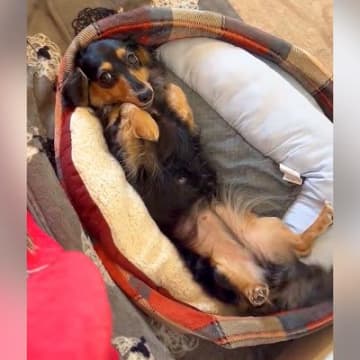 X(旧Twitter)に投稿されたのは、全力で撫でられ待機モーションに入るミニチュアダックスフンドさ...
