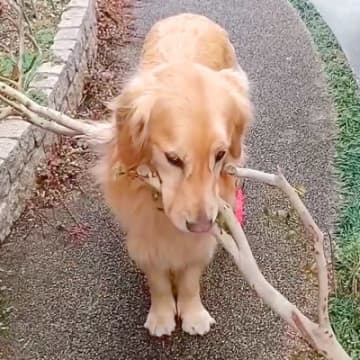 大型犬が『大きな枝を拾った』結果…どうしても持ち帰ろうとする姿が『男子小学生のようだ』と47万再生「運ぶの可愛すぎるw」「一生懸命」