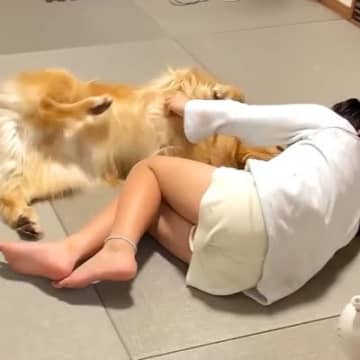 大型犬と娘の『いちゃいちゃタイム』を隠し撮りした結果…『感情が出すぎている姿』が可愛いと49万再生「目ww」「お邪魔してすみません」