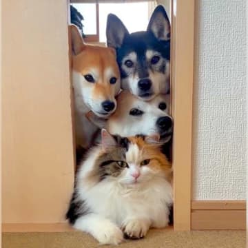 Instagramで話題になっているのは、仲良し犬猫家族が見せたまさかのお姿。『リアルツムツム』すぎ...