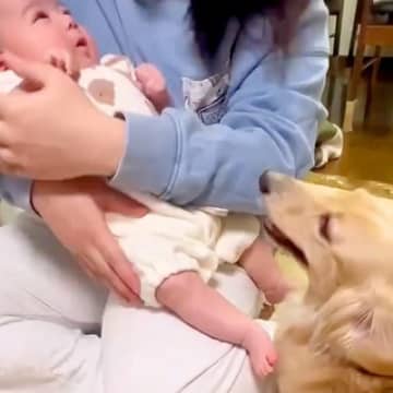 犬の前で『赤ちゃんが泣き出した』結果…まるで人間のような『オロオロ心配する姿』が優しすぎると28万再生「お兄ちゃんしてる」「偉い」と称賛