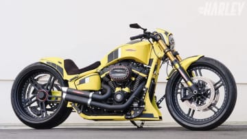 [ハーレーカスタム] ブレイクアウト:セパハン&片持ちスイングアーム。アグレッシブなGPスタイル!〈スズキ&アソシエイツ〉