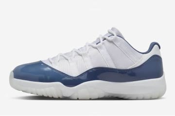 ナイキのスニーカー「エアジョーダン 11 ロー」新色、“くすみブルー”光沢レザー配したホワイトで