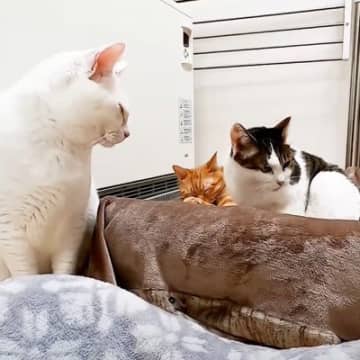 『いつも一人で眠る猫』"三人用の猫ベッド"を用意した結果…予想外すぎるオチに爆笑!1万1000再生「何やってんだw」「不器用w」