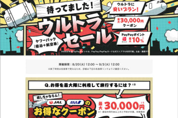 LINEヤフーは、旅行予約サイト「Yahoo!トラベル」で、「ヤフーパックウルトラセール」を8月20...