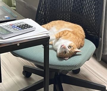 午後の仕事を始める前に「椅子を取り戻すミッション」が発生!? まったく移動する気のない猫の態度が笑える
