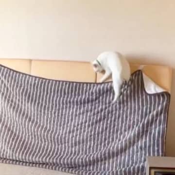 猫が『マットレスにダイブ』した結果…完全に斜め上をいく展開が面白すぎると爆笑の声続出「コントで草」「思わず声でた」と21万再生
