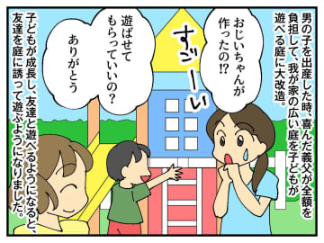義父手作りの【孫が遊べる庭】を狙った『がめついママ友』→ 「あり得ない提案」に、思わずカチン!