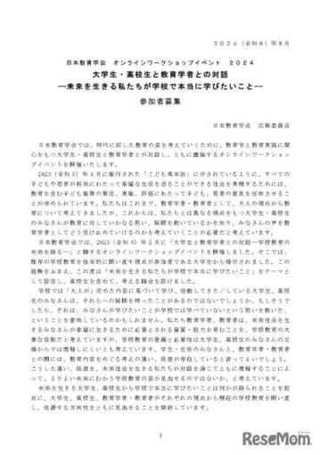 日本教育学会は2024年9月1日~12月15日の期間、2025年2月21日に開催するオンラインワーク...