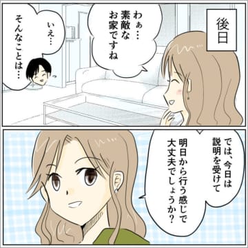 夫の食事を作りに来た女性。細かく指示された食事リストに笑顔でやる気を見せる。愛した人はモラ夫でした[21-1]|ママ広場マンガ