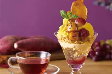 アフタヌーンティー・ティールーム、さつま芋と葡萄のパフェ&シャインマスカットミルフィーユ