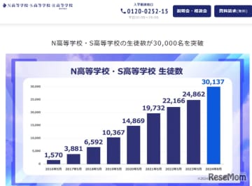 N高・S高の生徒数が3万人突破…8年5か月で20倍に
