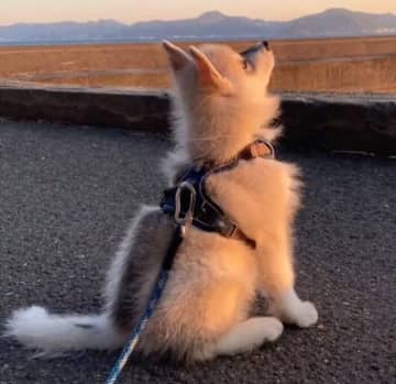“ちょこん”と座って空を見上げていた子犬 小さかった背中が、約4年後には頼もしさを感じるほど大きく成長!