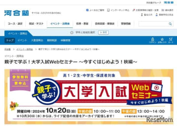 河合塾は2024年10月20日、中学生から高校2年生と保護者を対象に、大学入試のポイントや最新分析な...