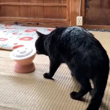 『ご飯を盗み食いしようとした黒猫』に話しかけたら…可愛すぎる反応が46万4000再生「やべっ…がたまらん」「目泳いでる感じがw」