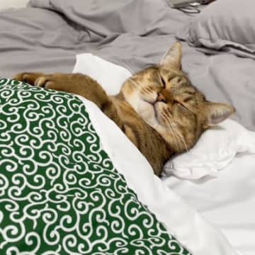 『遅番だと思っていたが…』実は早番だったときの絶望の朝を『完全再現した猫』が174万再生「2度寝の幸せからw」「完璧すぎ」と爆笑