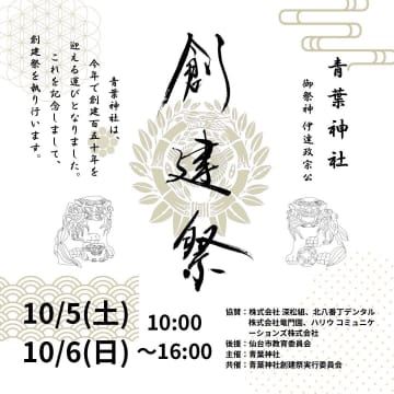 【青葉区】青葉神社で『創建150周年 創建祭』を、2024年10月5-6日に開催するみたい!