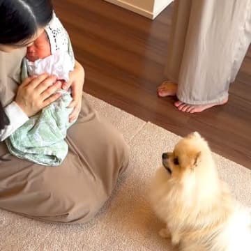 犬がママと『1週間ぶりに再会した』結果…まさかの『新しい家族との初対面』が幸せそのものだと26万再生「絶対いいお兄ちゃんになる」と絶賛