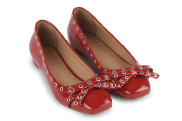 ガニー24年秋冬バレエシューズ、並ぶアイレット×リボンスクエアトゥで