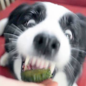 飼い主さんの野菜ジュースに興味を持ったボーダーコリーさんが、初めて野菜を食べてみた動画がYouTub...