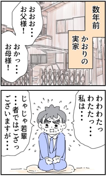 緊張しまくりだった結婚の挨拶の日のことを思い返す。大事なところで盛大に噛んでしまった育児なめすぎ夫[106]|くまおのマンガ堂