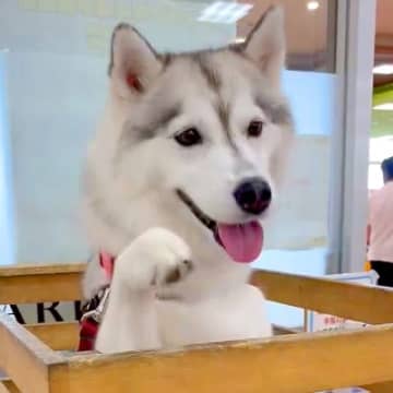 ハスキー犬がホームセンターで愛嬌を振りまいた結果…カートで見せた『あざとすぎる行動』が1万3000いいね「ハイタッチ可愛すぎる」と悶絶