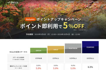 Relux、ポイントアップキャンペーン開催 最大5%付与