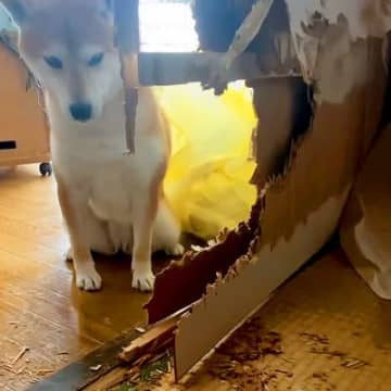 帰ったら家がぐちゃぐちゃに…まさかの悲劇で『犬が現行犯逮捕される光景』が面白すぎると238万再生「派手にやったなw」「再逮捕されるの草」