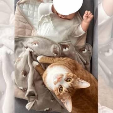 『赤ちゃんのねんね写真集』を作ったら…『猫のベビーシッター』が尊すぎると36万回再生「微笑ましい…」「好き好きオーラ全開」の声