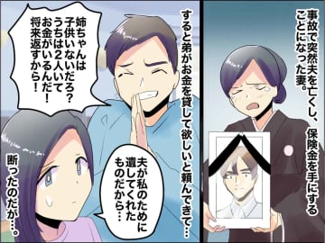 夫を亡くした私に「姉ちゃん子どもいないでしょ? お金貸してよ」【保険金】にたかってきた弟に絶句!