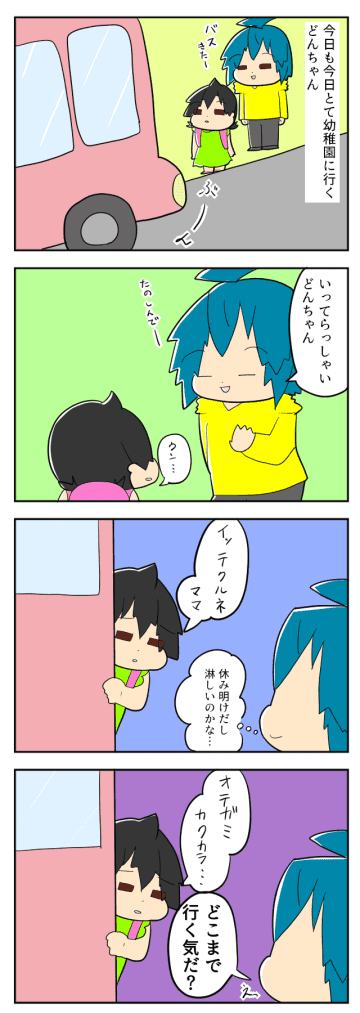 別れ際にバスから「お手紙書くから」と寂しそうに言う娘。とんでもなく遠くに行きそうな雰囲気ですが幼稚園バスです|mochikoの育児マンガ