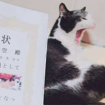 『長寿表彰状』をもらった猫…まさかの年齢に驚きが隠せないと377万表示突破「すごすぎる!!」「若々しくてビックリ!」と話題に