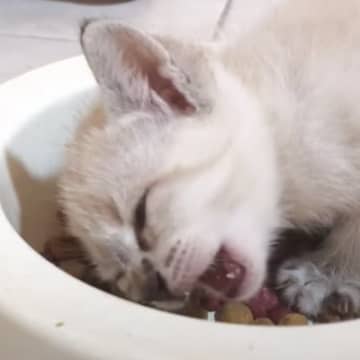 『腹ペコな子猫』がご飯を食べたら…驚きの行動をとる姿が面白すぎると5万4000再生「凄く個性ある食べ方」「ずっと見ていたい」