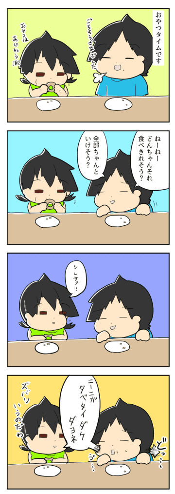 おやつをゆっくり食べる妹に「食べきれる?」と気遣う兄。気遣いの裏にあった狙いをズバリ言い当てられる|mochikoの育児マンガ