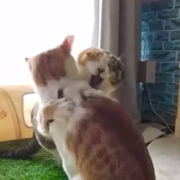 『じゃれあいがエスカレート』してしまう猫たち…『壮絶なバトル』の模様が微笑ましすぎると1万4000再生「平和だ」「教育的指導w」