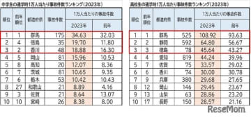 自転車の安全利用推進委員会は2024年9月19日、2023年の全国都道府県別、中高生の通学時における...