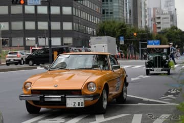 往年のダットサンなど銀座を走る…交通安全運動クラシックカーパレード
