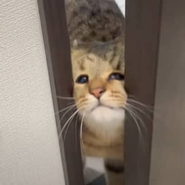 トイレまでついてくるストーカー猫…まさかの顔で『侵入してくる姿』に爆笑の声続出「ネジ込みかたww」「可愛すぎてワロタw」